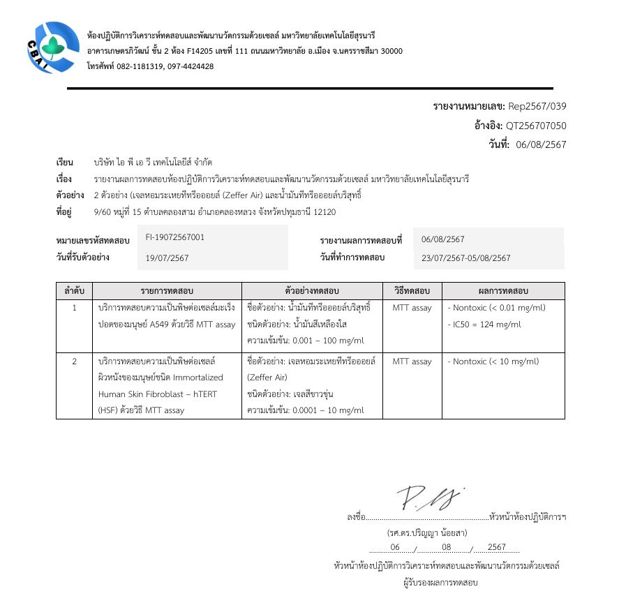 ผลการทดสอบความเป็นพิษต่อ เซลล์ ผิวหนังของมนุษย์ชนิด HSF